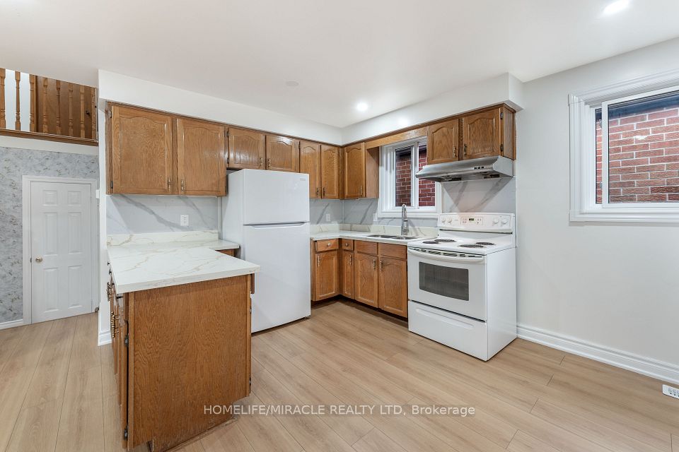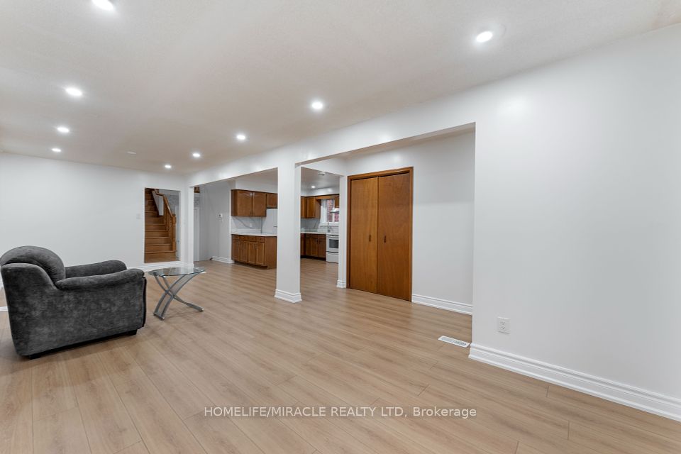 Recently renovated Open Concept Home. New Windows. New Floors, New bathrooms, New Potlights, New Deck, New concrete on the side, New Powder room, New Deck. This is a huge backsplit house with lots of potential. Lower portion with two bedrooms, separate kitchen, and bath was rented for 2200. Can be converred to five bedroom house. Two more basement apartments possible in unspoiled huge basement! Lower Floor Family Room With Fireplace, Good Sized Bedrooms And Large Living/Dining Area, Oak Staircase, Garage Door With Opener And Huge Backyard.