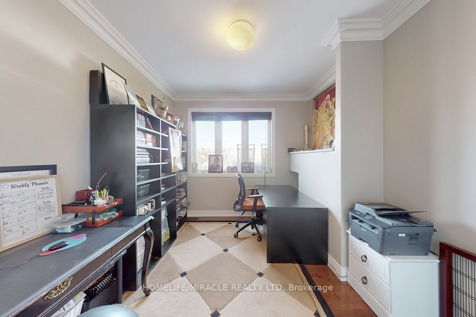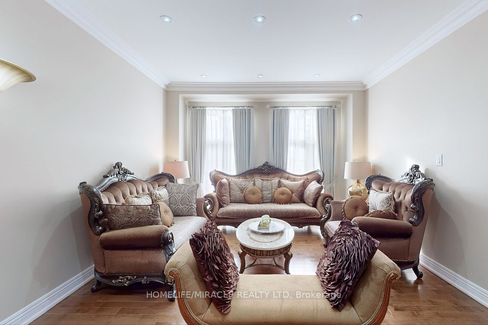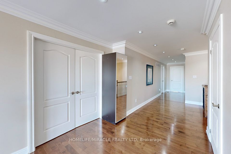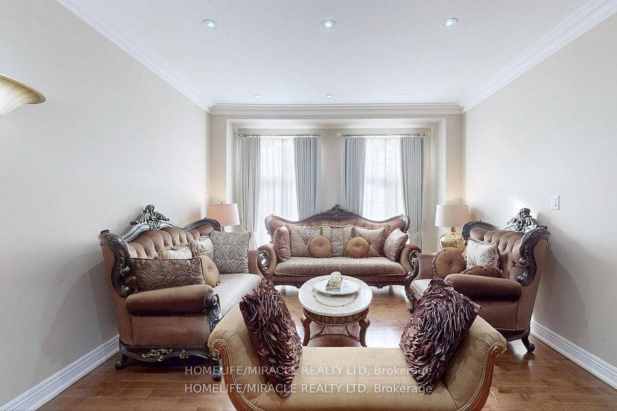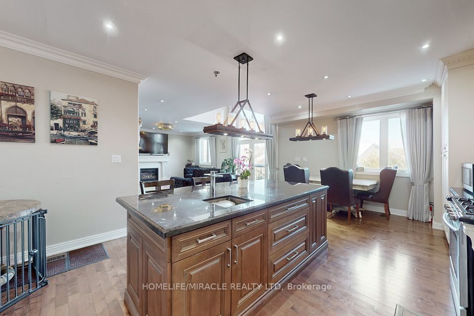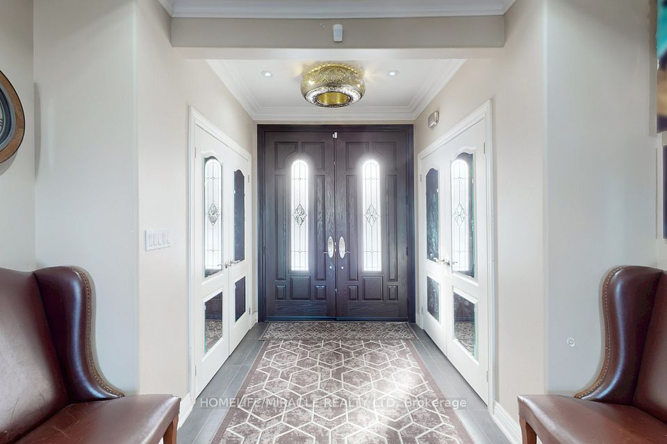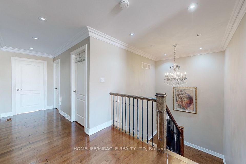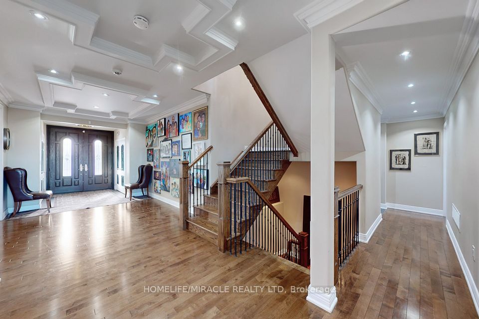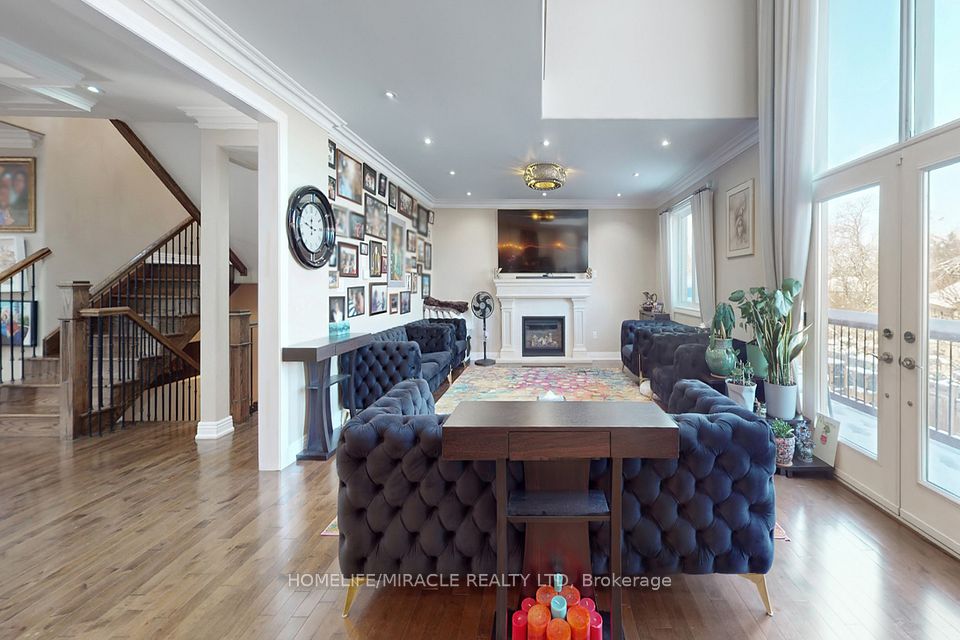 Welcome to this beautiful custom-built home located in Pickering. Standing on nearly 6,000sq.ft., including the walk-out basement, the home greets you with an impressive double doorgrand entry to a long, inviting hallway that flows smoothly into the generous family & formaldining rooms. The house features 9ft. ceilings, hardwood floors, crown moulding, pot lights, &oak stairs with wrought iron spindles. The iconic living, dining, & kitchen, is perfect forspending time with family or hosting friends. A dramatic, ~20ft long floor-to-ceiling glasswall floods the space with natural light all day long. The second-floor mezzanine overlookingthe living room, gives a loft-like feel that allows a connection between the two levels. Theview from the second-floor, especially during winter evenings, feels like you're looking outfrom a hill-top chalet. The gourmet kitchen boasts a large center island, granite counters,custom cabinetry, & stainless-steel appliances. The 3-piece washroom on the main floor sitsbeside a generous room with closet; perfect for multi-generational living or benefits familymembers with mobility issues. The expansive second floor (~2,200 sq.ft.) offers 5 spaciousbedrooms, 3 luxurious washrooms, and laundry room. The primary suite features His & Her walk-inclosets & 5-piece washroom with dual vanity, soaker tub & large standing shower. A secondprimary bedroom with ensuite, two additional bedrooms with Jack & Jill washroom, & the 5thbedroom can be creatively used as an office, yoga/Pilates room, prayer room, playroom for thekids, or library; the options are endless. At ~1900 sq.ft., the bright walkout basement withpot lights, built-In-bar, 3-piece washroom & ample storage space is perfect for largegatherings. Conveniently located mins away from 401, Shopping Plazas, tons of restaurants,grocery stores, and top Durham schools this home blends architectural elegance with moderncomfort. A rare executive offering-book your showing today.