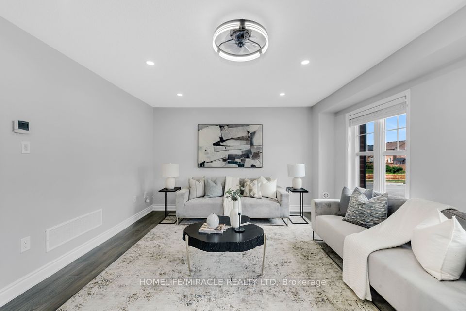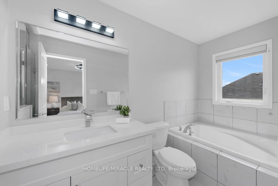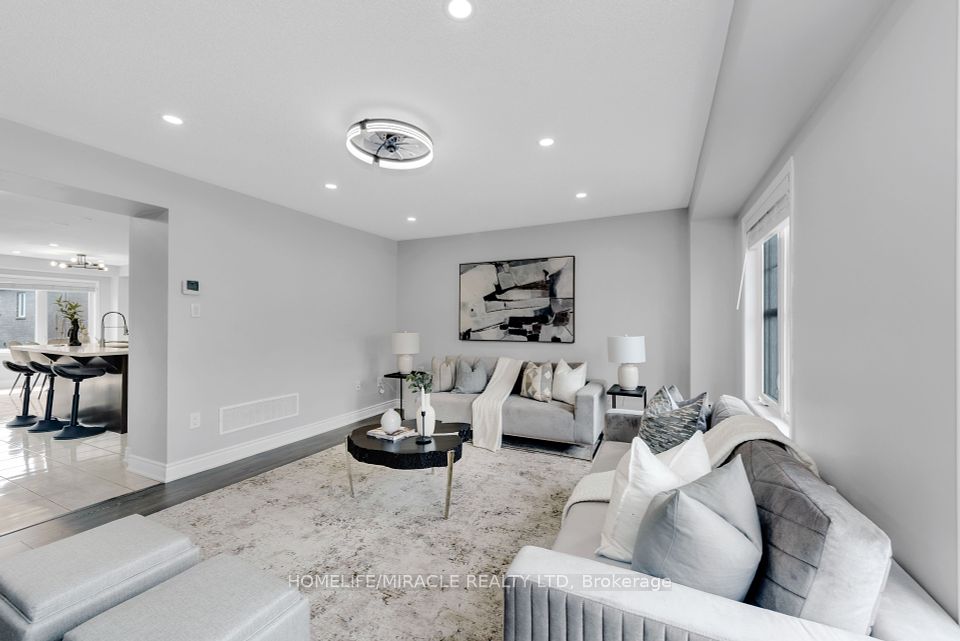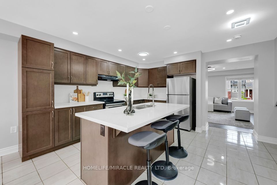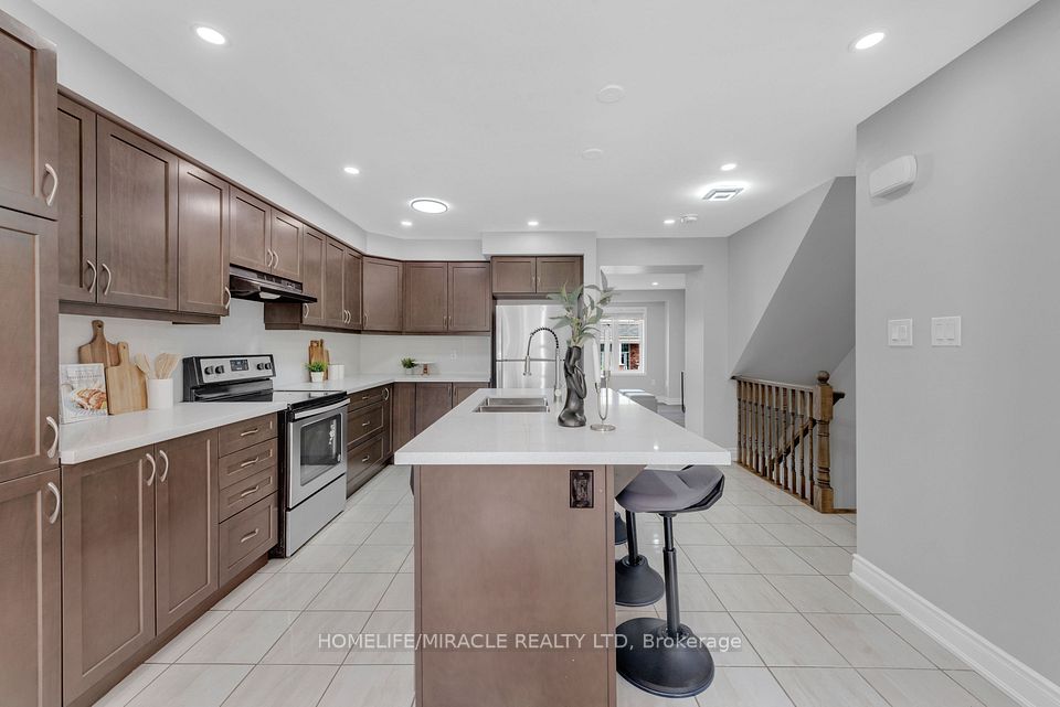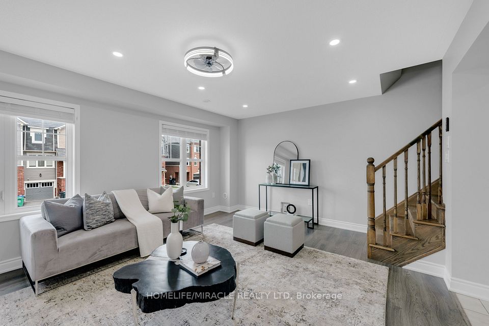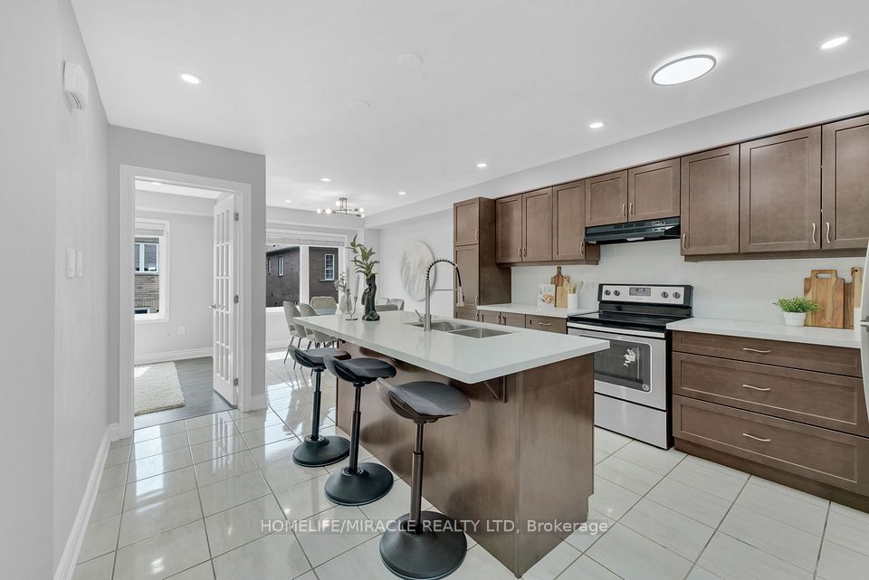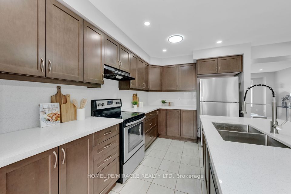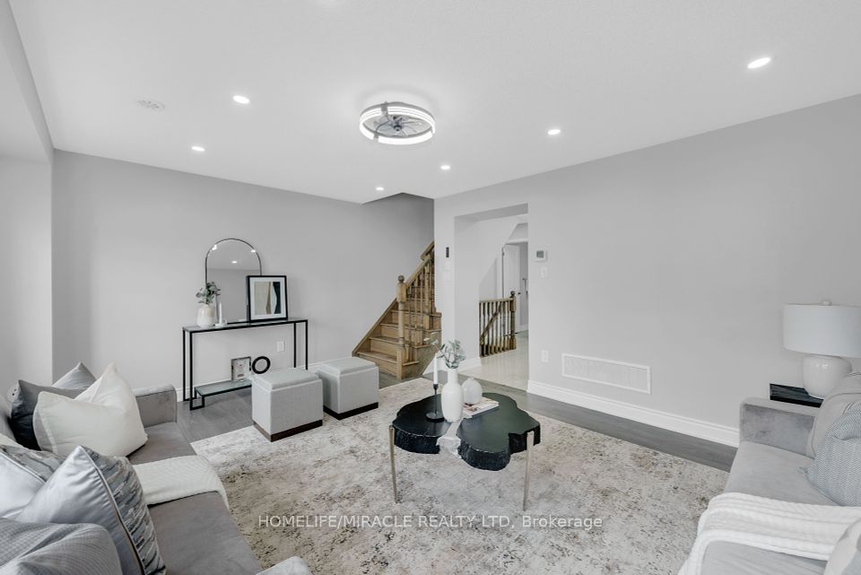 Welcome to 5 Stewardship Rd, Brampton! This stunning 4-bedroom, 4-bath FREEHOLD townhouse, almost 1500 sq ft, offers spacious, modern living with NO CONDO/POTL fees! Designed for comfort and style, this home features a huge living room, a formal dining area, and a bright breakfast nook perfect for entertaining. The gourmet kitchen boasts stainless steel appliances, brand new granite countertops (2025), a huge center island, and ample storage. Enjoy Premium wooden flooring (2025) throughout, no carpet! Brand new pot lights (2025), brand new light fixtures (2025), brand new vanities & faucets (2025), new blinds (2025) and fresh paint (2025) make this home feel as good as new-stylish, bright, and move-in ready... The primary bedroom offers a spa-like ensuite and a walk-in closet, while an additional bedroom with an ensuite on the main floor adds extra convenience. The remaining bedrooms are bright, spacious, and well-appointed. Top Location & Unmatched Convenience: Located in Upper Mount Pleasant, one of Brampton's most desirable neighborhoods, this home is just minutes from Mount Pleasant GO Station, ensuring easy commuting to Toronto. With Brampton Transit at your doorstep and top-rated schools nearby including My First Montessori, Dolson Public School, and a new Catholic school under construction this is the perfect home for families. Surrounded by parks, major highways, shopping centers, banks, grocery stores, and diverse dining options, this home offers the perfect blend of luxury, location, and lifestyle. Don't miss this rare opportunity to own a move-in-ready, freehold townhouse in a prime family-friendly Brampton location! $$$$$ spent on the upgrades!!!!