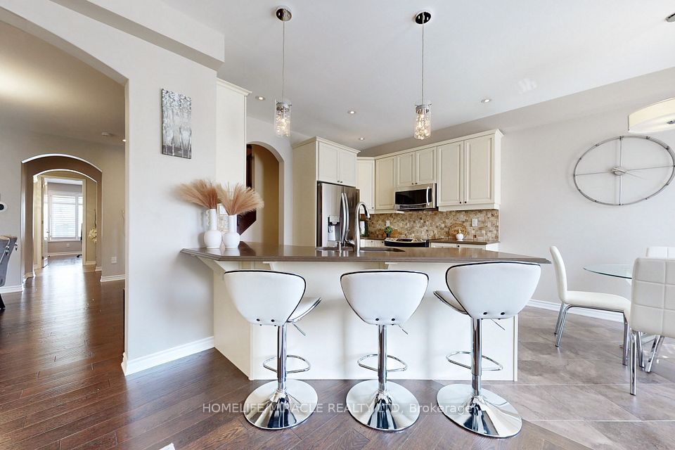 Simply Gorgeous Property Situated On A Premium Lot On A Quiet Cul-de-Sac / Dead End Street &Backing Onto A Pond. This Detached, 4+1 Bedroom, 4 Bathroom Home Features Over 3000 Square Feet Of Finished Living Space Including A Beautifully Finished Basement With A Large Rec Room, Bedroom & 3PC Bathroom. This Home Has A Modern Floor Plan With Office On The Ground Level, Separate Dinning Area Which Overlooks Open Concept Family Room With Gas Fireplace. Modern Kitchen With Stainless Steel Appliances, Quartz Counters, Backsplash, Pendant Lights & Breakfast Area Which Walks-Out To Deck & Beautiful Views Of The Pond. A Grand Primary Bedroom With Spa Like Ensuite Including Glass Shower & Soaker Tub. Other Three Good Size Bedrooms. Conveniently Located Upper Level Laundry Room. There Is Access Door From House To Garage. Widened Driveway To Accommodate Two Car Parking & One In The Garage. Located A Block Away From The Largest Park In Town. A Short Walk To Schools, Shopping, Sports Centre, Parks & Milton Hospital. **Photos from previous listing**