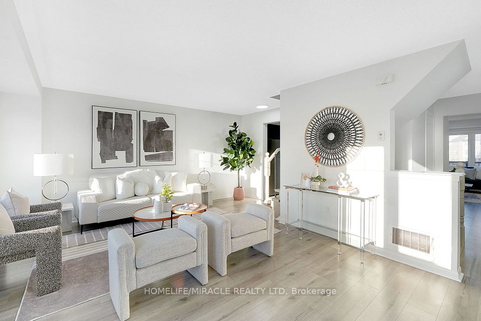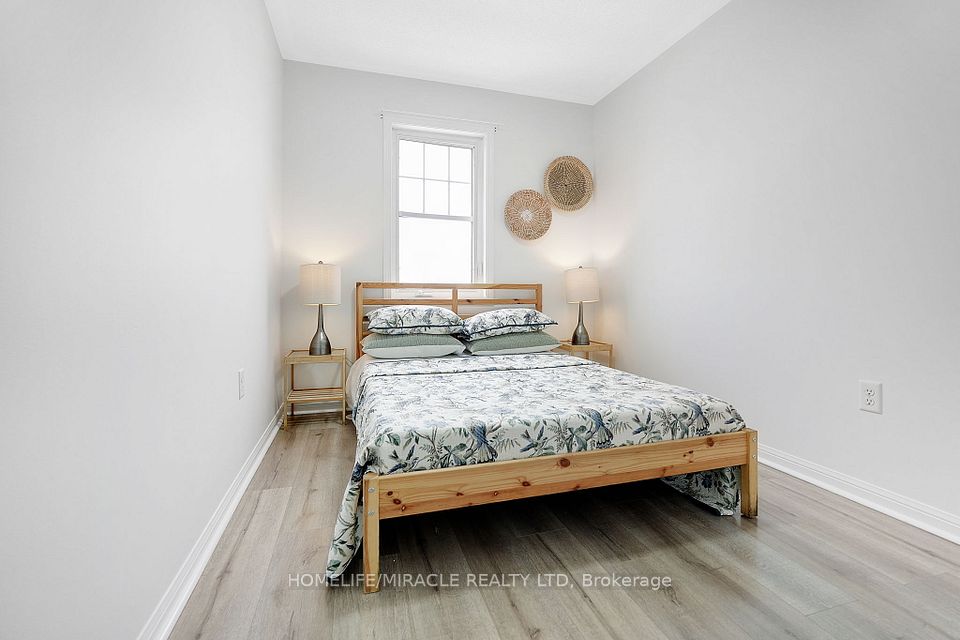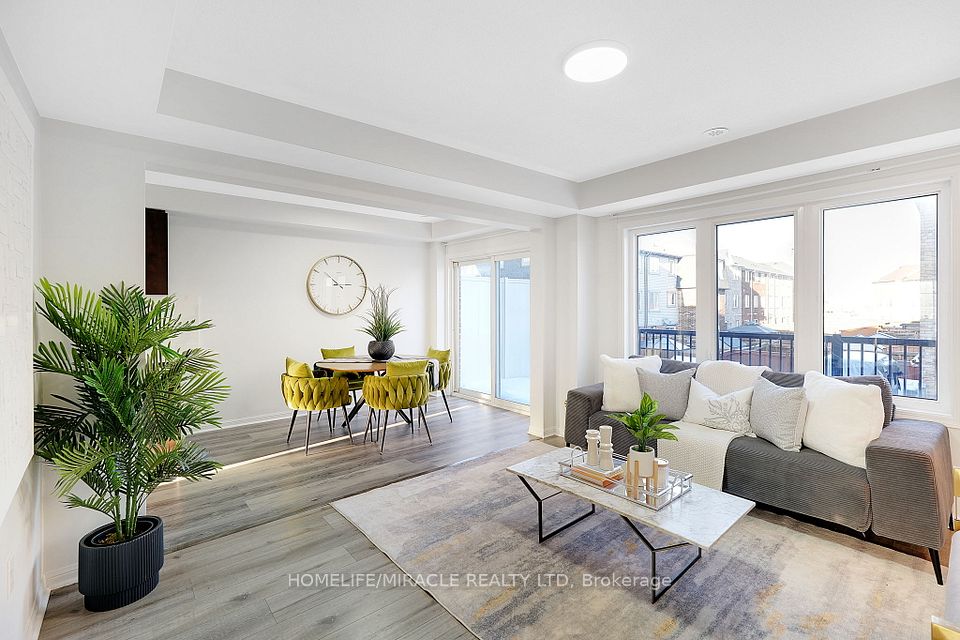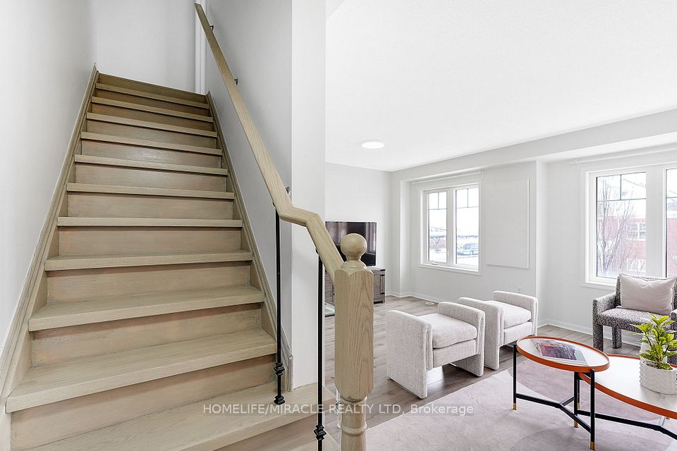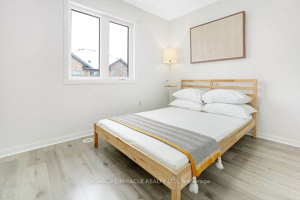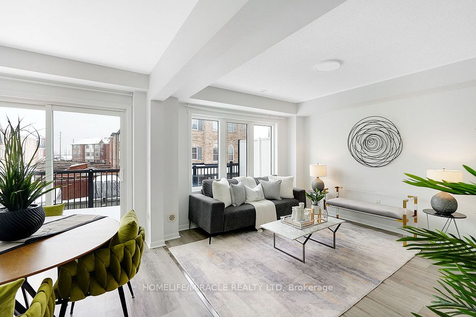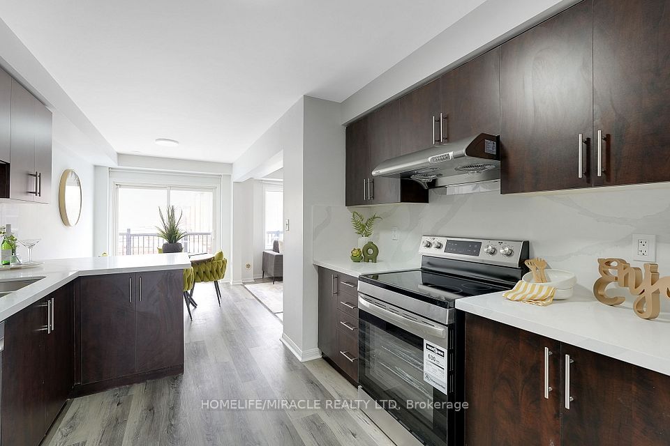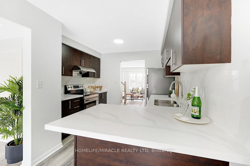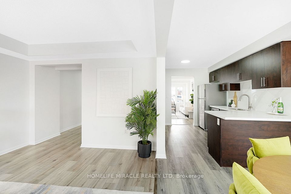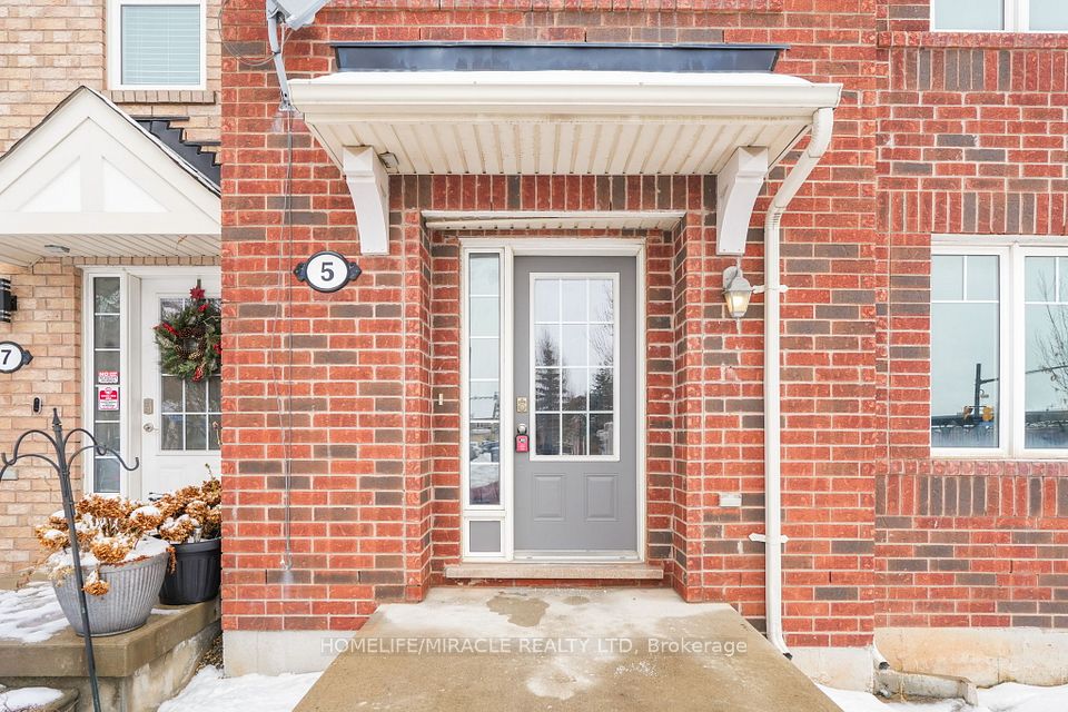 Immaculate Mattamy-built freehold townhouse located in the highly desirable Mount Pleasant /Northwest Brampton community. This spacious home features 5 bedrooms and 4 bathrooms, carpet free, offering an ideal layout for growing or multi-generational families. The ground floor has one bedroom with a full washroom. Freshly painted throughout with new flooring and elegant oak stairs, a beautifully updated kitchen with new countertops, backsplash, and cabinet doors; brand-new kitchen appliances, including a new exhaust hood (washer & dryer are approx. 2 years old). The home is bright and welcoming with an abundance of natural light from numerous windows. The open-concept living and dining areas provide ample space for entertaining, while the family room offers a walkout to a large balcony, ideal for relaxing outdoors. The primary bedroom includes a walk-in closet and a private ensuite bathroom. Complete with a double-car garage and additional driveway parking (total of 3 spaces), this property is conveniently located just steps to Mount Pleasant GO Station, schools, parks, library, community centre, shopping, and other essential amenities. The ground-floor bedroom was originally a den and has been professionally converted into a bedroom with an additional washroom added with city permits, providing extra convenience and functionality.