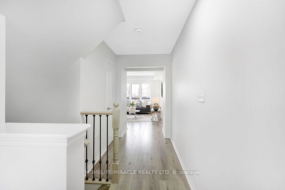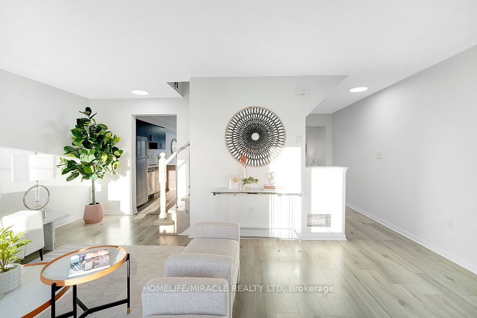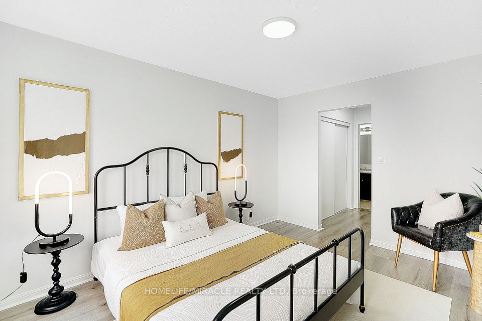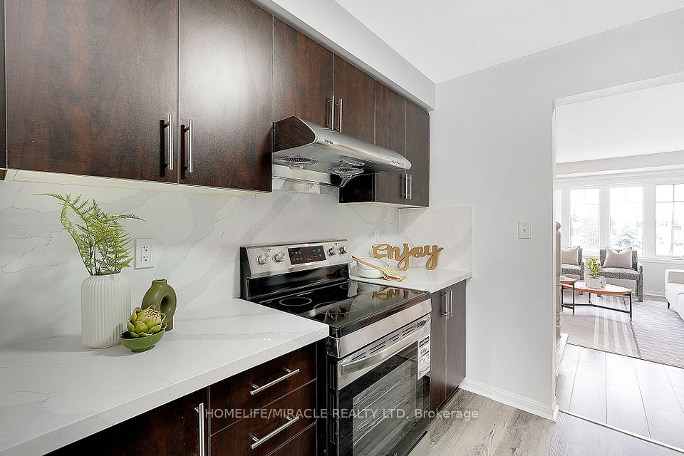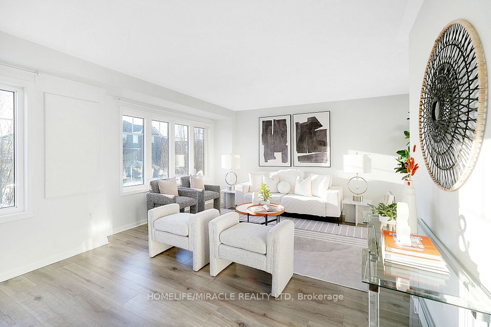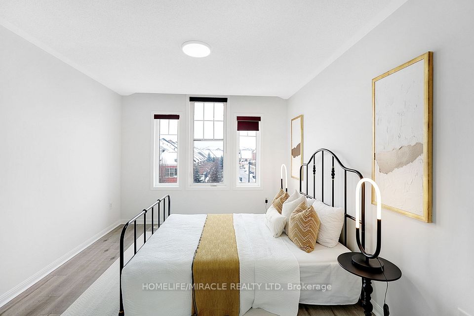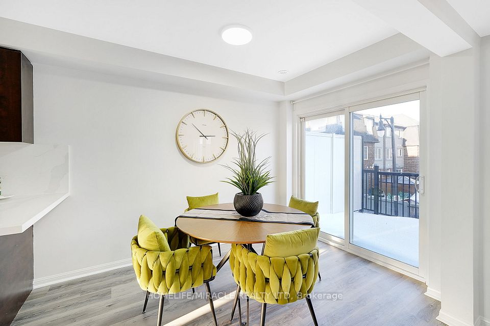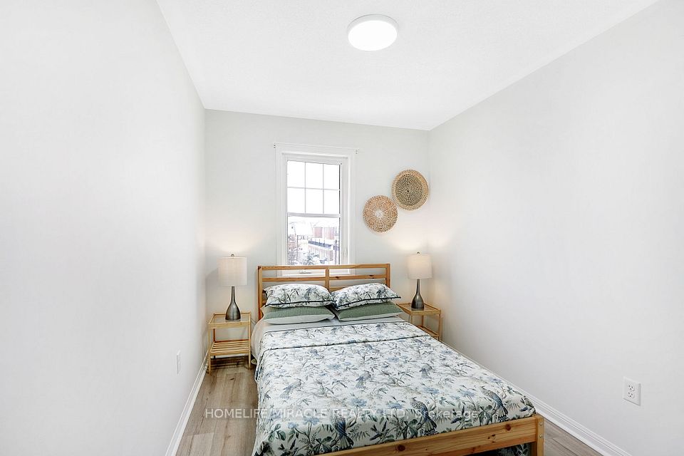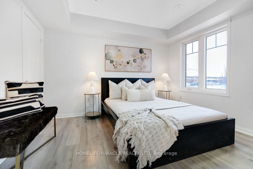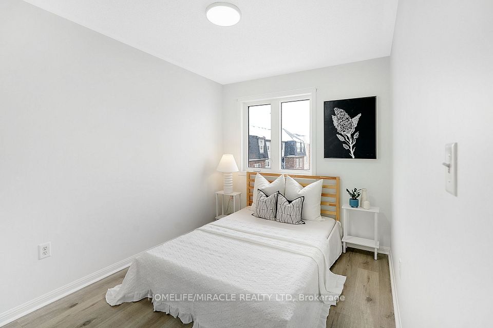 Immaculate Mattamy-built freehold townhouse located in the highly desirable Mount Pleasant /Northwest Brampton community. This spacious home features 5 bedrooms and 4 bathrooms, carpet free, offering an ideal layout for growing or multi-generational families. The ground floor has one bedroom with a full washroom. Freshly painted throughout with new flooring and elegant oak stairs, a beautifully updated kitchen with new countertops, backsplash, and cabinet doors; brand-new kitchen appliances, including a new exhaust hood (washer & dryer are approx. 2 years old). The home is bright and welcoming with an abundance of natural light from numerous windows. The open-concept living and dining areas provide ample space for entertaining, while the family room offers a walkout to a large balcony, ideal for relaxing outdoors. The primary bedroom includes a walk-in closet and a private ensuite bathroom. Complete with a double-car garage and additional driveway parking (total of 3 spaces), this property is conveniently located just steps to Mount Pleasant GO Station, schools, parks, library, community centre, shopping, and other essential amenities. The ground-floor bedroom was originally a den and has been professionally converted into a bedroom with an additional washroom added with city permits, providing extra convenience and functionality.
