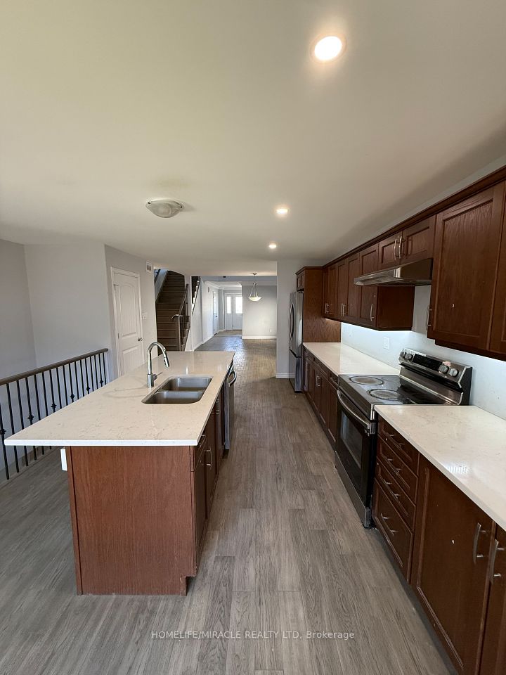 Beautifully crafted all-brick detached residence with nearly 3,600 sq. ft. of living space. This home showcases 5 generously sized bedrooms, including a primary suite with a walk-in closet and a 4-piece ensuite. Designed for modern living, the main floor features 9' ceilings, hardwood floors, and an elegant oak staircase. The chef-inspired kitchen offers quartz countertops and opens to a spacious great room with a gas fireplace. Step out from the dining area onto a 10' x 12' deck, perfect for gatherings. Comes complete with stainless steel appliances-fridge, stove, dishwasher, range hood, washer & dryer. Conveniently located just 45 minutes from the GTA with quick access to Highways 115, 401 & 407. Don't Miss out!