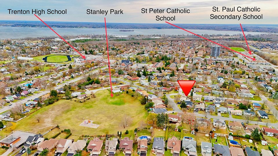 Absolutely Beautiful Corner Lot All Brick & Stone Detached Home Available For Lease In A High Demand Community. This Lovely Home Features An Inground Pool, 4 Car Parking On Driveway, 3 Spacious Bedrooms & 2 Full Bathrooms. Stunning Double Door Entry Easy To Move Furniture In & Out. The Main Features A Gorgeous Family Room With Convenient Access To The Backyard Ideal For Entertaining Family & Friends During Those Summer BBQs Around The Pool. Good Size Windows Throughout The Home For Natural Sunlight. You Will Find The Kitchen On The Second Level With Breakfast Bar Separated From The Family Room. Upstairs You Will Find Three Commodious Bedrooms With A Full 4 Piece Bathroom. The Basement Is Finished With A Den & Laundry Room. Tons Of Storage Throughout The House Including The Shed In The Backyard. Great Location Close To Schools, Bus Route, Restaurants, Downtown Trenton, Hospital, Walmart & 7 Min Drive To Hwy 401.