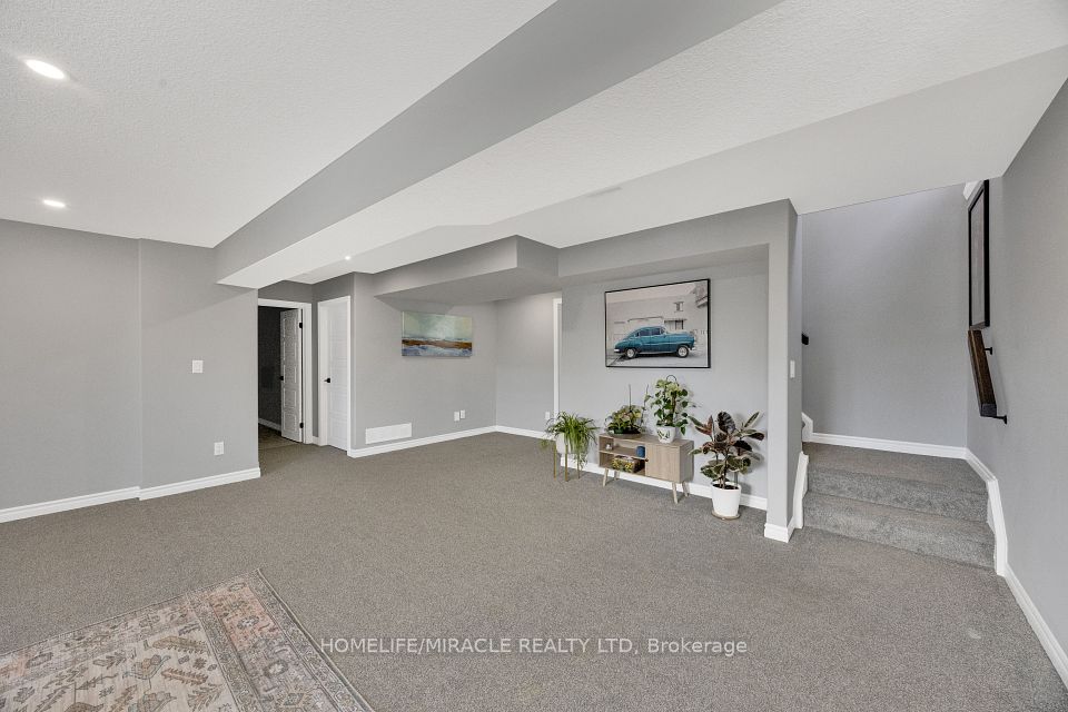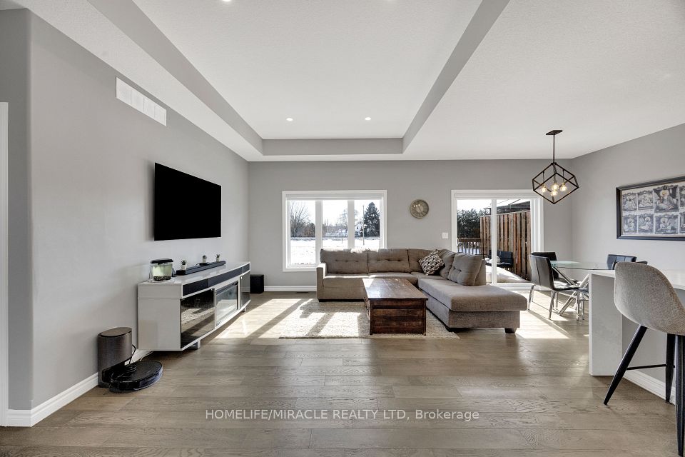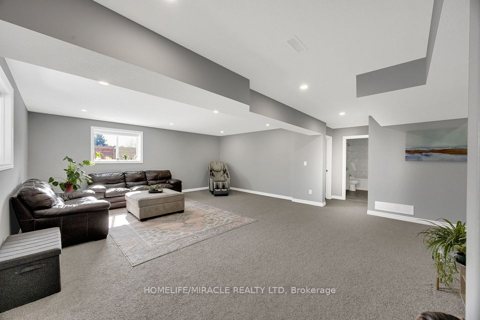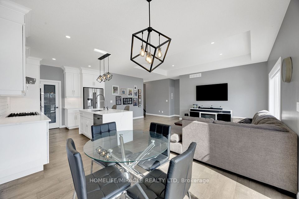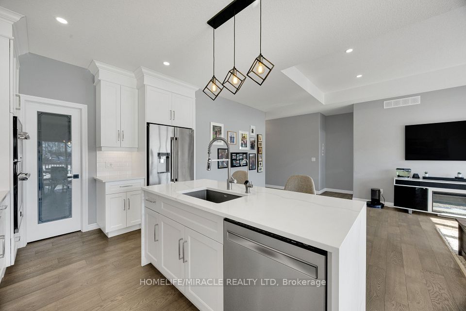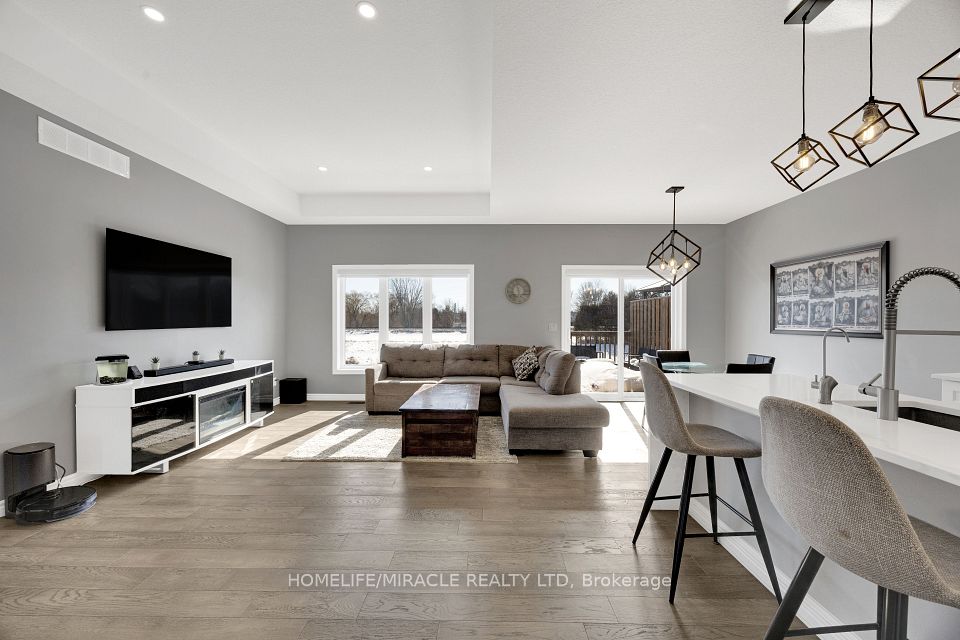 Stunning 2+2 Bedroom, 3 Bathroom Semi-Detached Bungalow with Double Garage! This beautifully maintained home offers approximately 1,300 sq. ft. of open-concept living on the main level, plus a professionally finished basement-perfect for extended family or additional living space.The main floor features a generous custom kitchen with granite countertops and built-in stainless steel appliances, hardwood and ceramic flooring, 9' ceilings (with an impressive 10' tray ceiling in the Great Room), and a convenient main floor laundry/mudroom. Quality brick exterior with pot lights, extended driveway with exposed concrete walkway, and impressive curb appeal throughout.Step out onto the 12' x 12' deck and enjoy breathtaking views of lush greenspace with no rear neighbours-offering privacy and tranquility. The landscaped backyard is ideal for relaxing or entertaining.The fully finished lower level includes 2 additional bedrooms, a spacious recreation room, a full 3-piece bathroom, large above-grade windows allowing abundant natural light, and a generous storage area.Located on a quiet crescent with attractive brick and stone exterior, this home truly shows pride of ownership and is move-in ready!