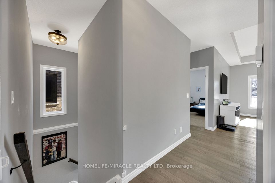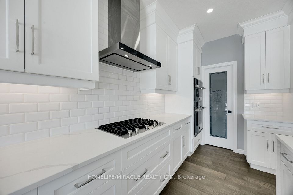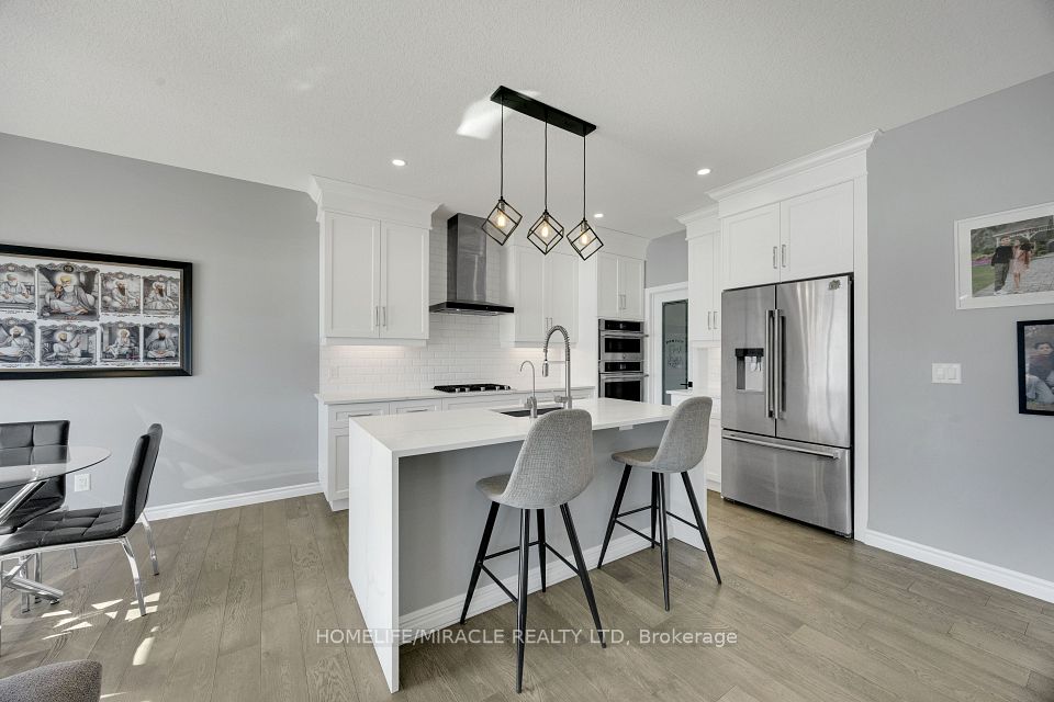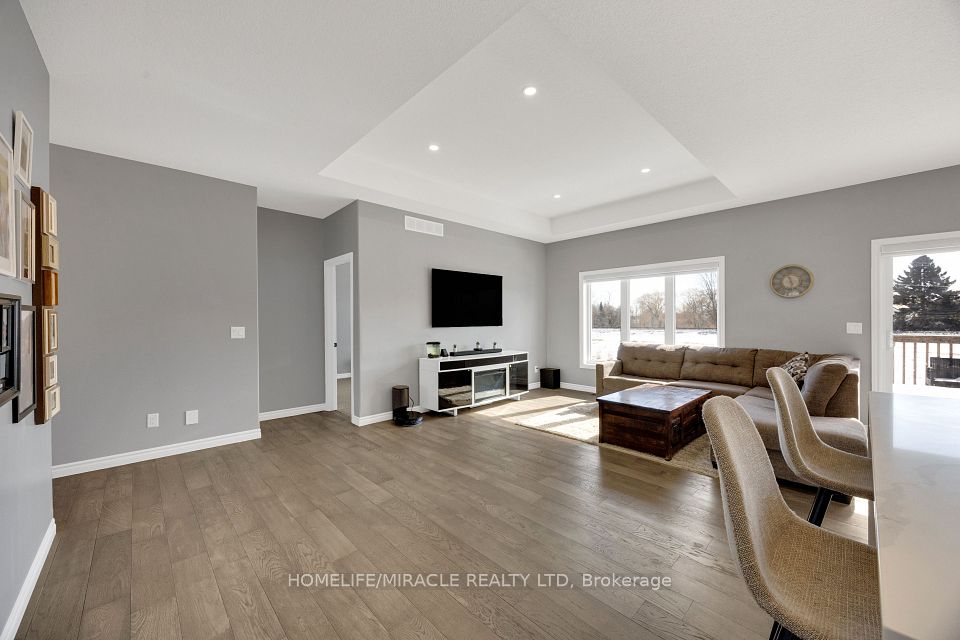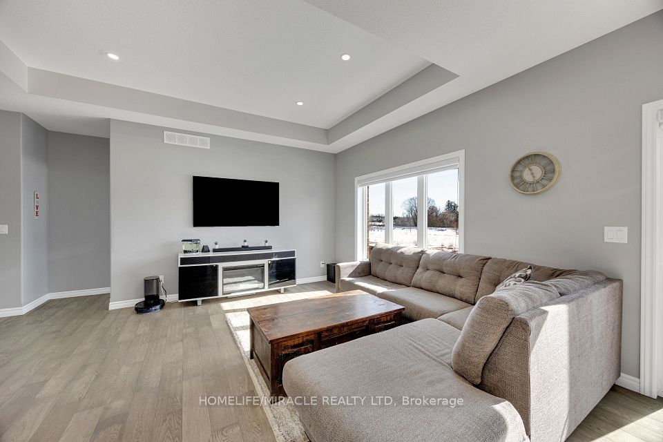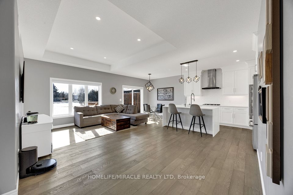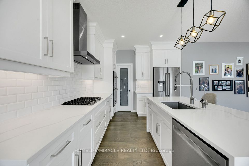 Stunning 2+2 Bedroom, 3 Bathroom Semi-Detached Bungalow with Double Garage! This beautifully maintained home offers approximately 1,300 sq. ft. of open-concept living on the main level, plus a professionally finished basement-perfect for extended family or additional living space.The main floor features a generous custom kitchen with granite countertops and built-in stainless steel appliances, hardwood and ceramic flooring, 9' ceilings (with an impressive 10' tray ceiling in the Great Room), and a convenient main floor laundry/mudroom. Quality brick exterior with pot lights, extended driveway with exposed concrete walkway, and impressive curb appeal throughout.Step out onto the 12' x 12' deck and enjoy breathtaking views of lush greenspace with no rear neighbours-offering privacy and tranquility. The landscaped backyard is ideal for relaxing or entertaining.The fully finished lower level includes 2 additional bedrooms, a spacious recreation room, a full 3-piece bathroom, large above-grade windows allowing abundant natural light, and a generous storage area.Located on a quiet crescent with attractive brick and stone exterior, this home truly shows pride of ownership and is move-in ready!